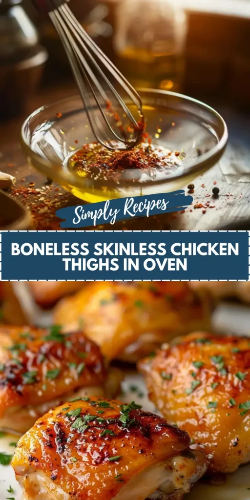 Cooking Boneless Skinless Chicken Thighs in Oven has truly been a delightful experience for me. The joy of serving a dish that’s not only simple but also bursting with flavor is unmatched. It’s a recipe that brings my family together, creating moments filled with laughter and satisfaction. Plus, knowing I can whip it up on a busy weeknight makes me feel like a culinary superhero! I hope you find as much joy in this recipe as I do, making it a staple in your kitchen for years to come.