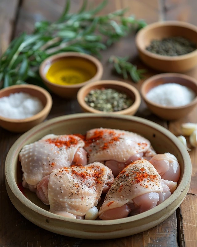 - Place the chicken thighs on a baking sheet lined with parchment paper.