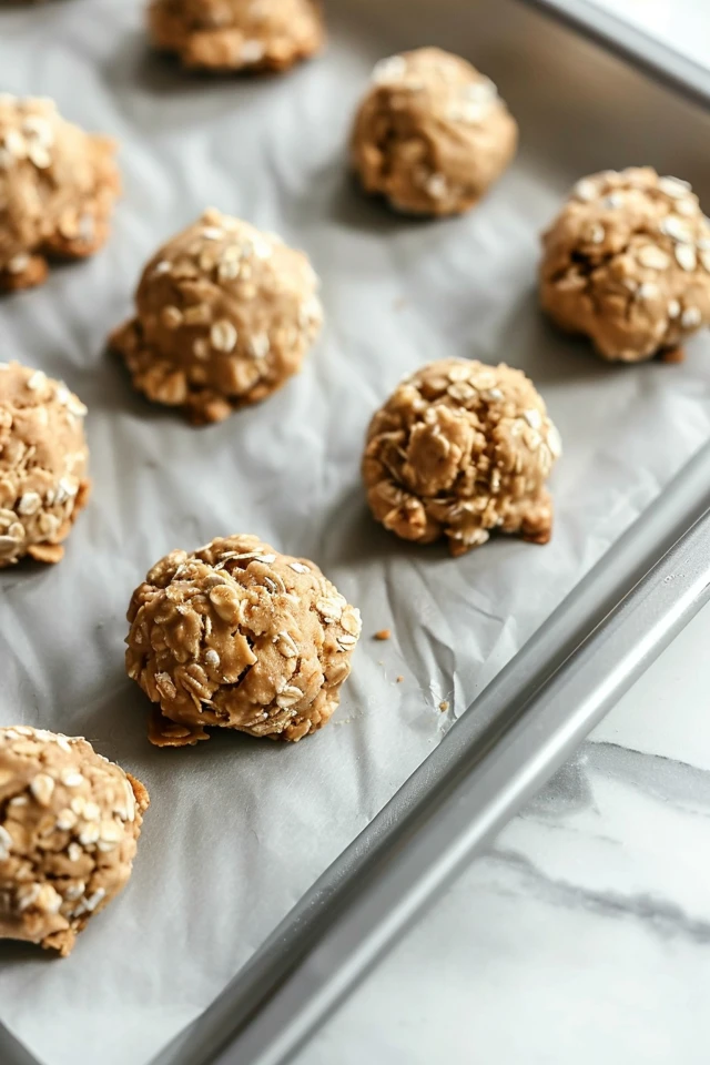 Line a baking sheet with parchment paper. This prevents the cookies from sticking and makes cleanup a breeze. Use a spoon to drop spoonfuls of the cookie mixture onto the sheet, leaving some space between each one. They’ll spread a little while baking, so give them room to breathe!